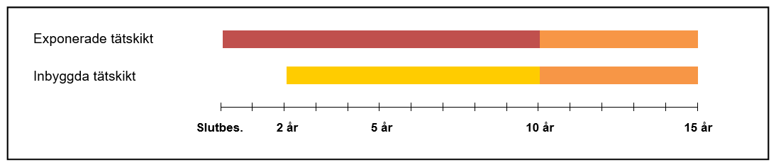(År 1-2 gäller takentreprenörens egen entreprenadförsäkring) - Utöver ansvarsutfästelsens giltighetstid ingår en materialgaranti på 5 år.
